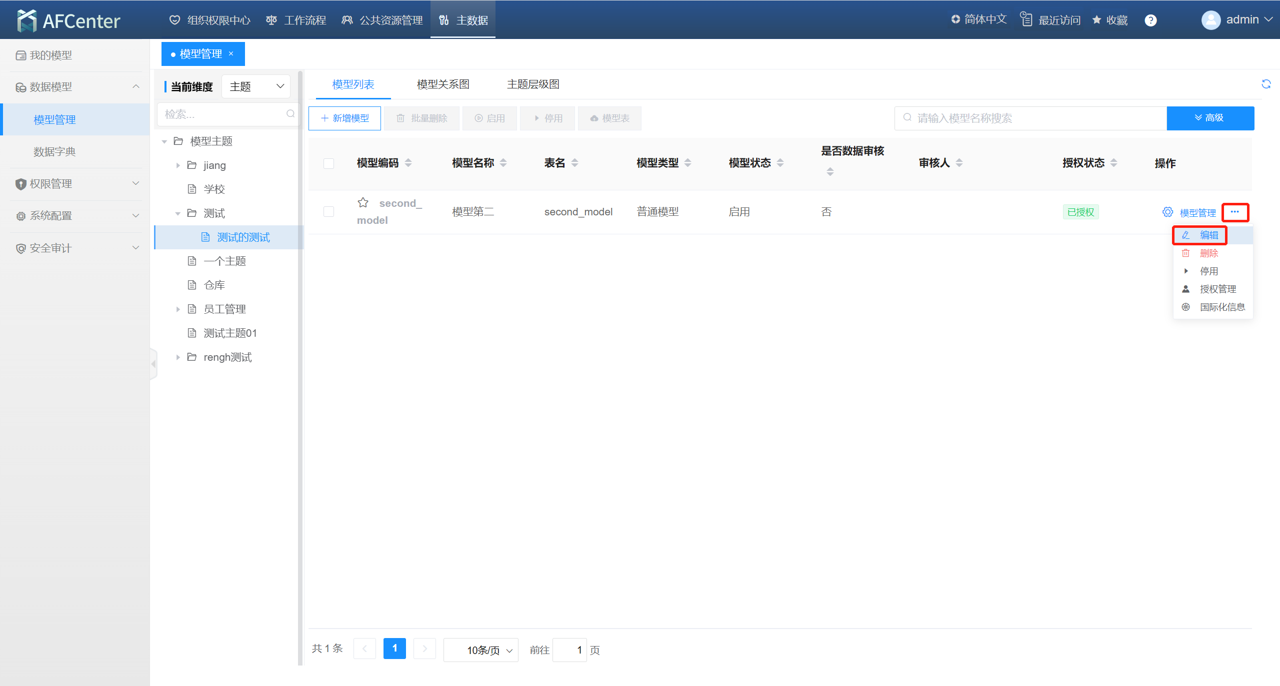 选择模型右侧下拉的【编辑】按钮,弹出编辑模型弹框,编辑需要修改的内容点击【提交】按钮保存设置。