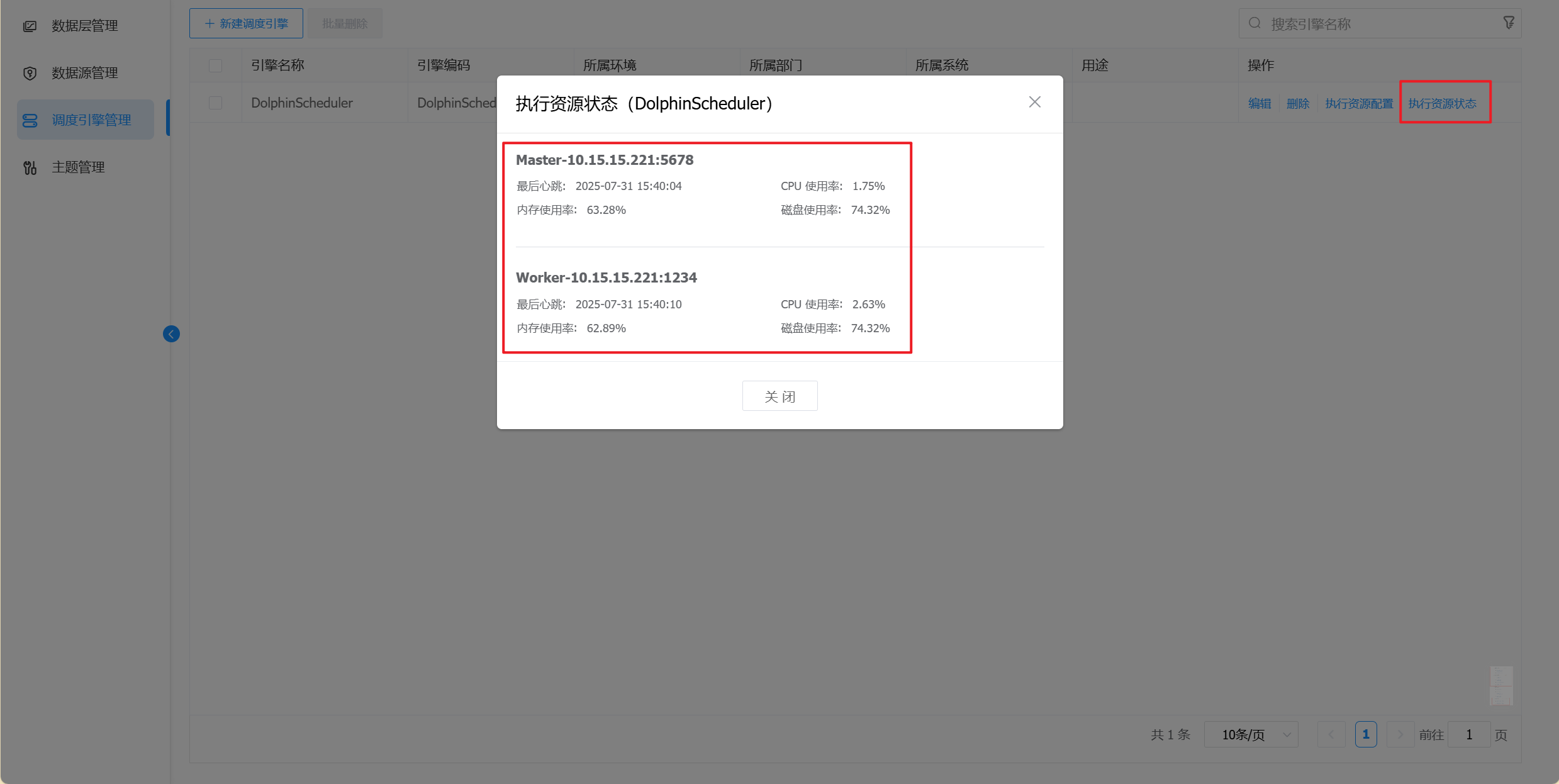 调度引擎验证:可以通过查看【执行资源状态】来查看调度引擎是否正常运行。