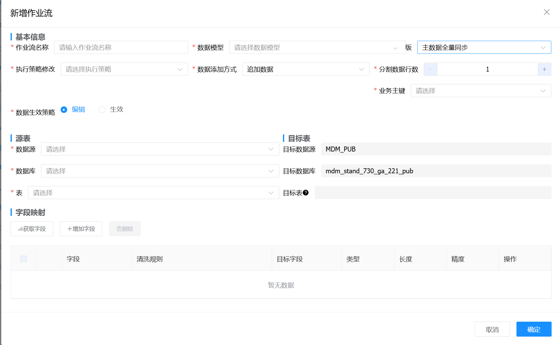 目标表:根据数据模型选择,自动匹配主数据模型对应的数据源配置信息。