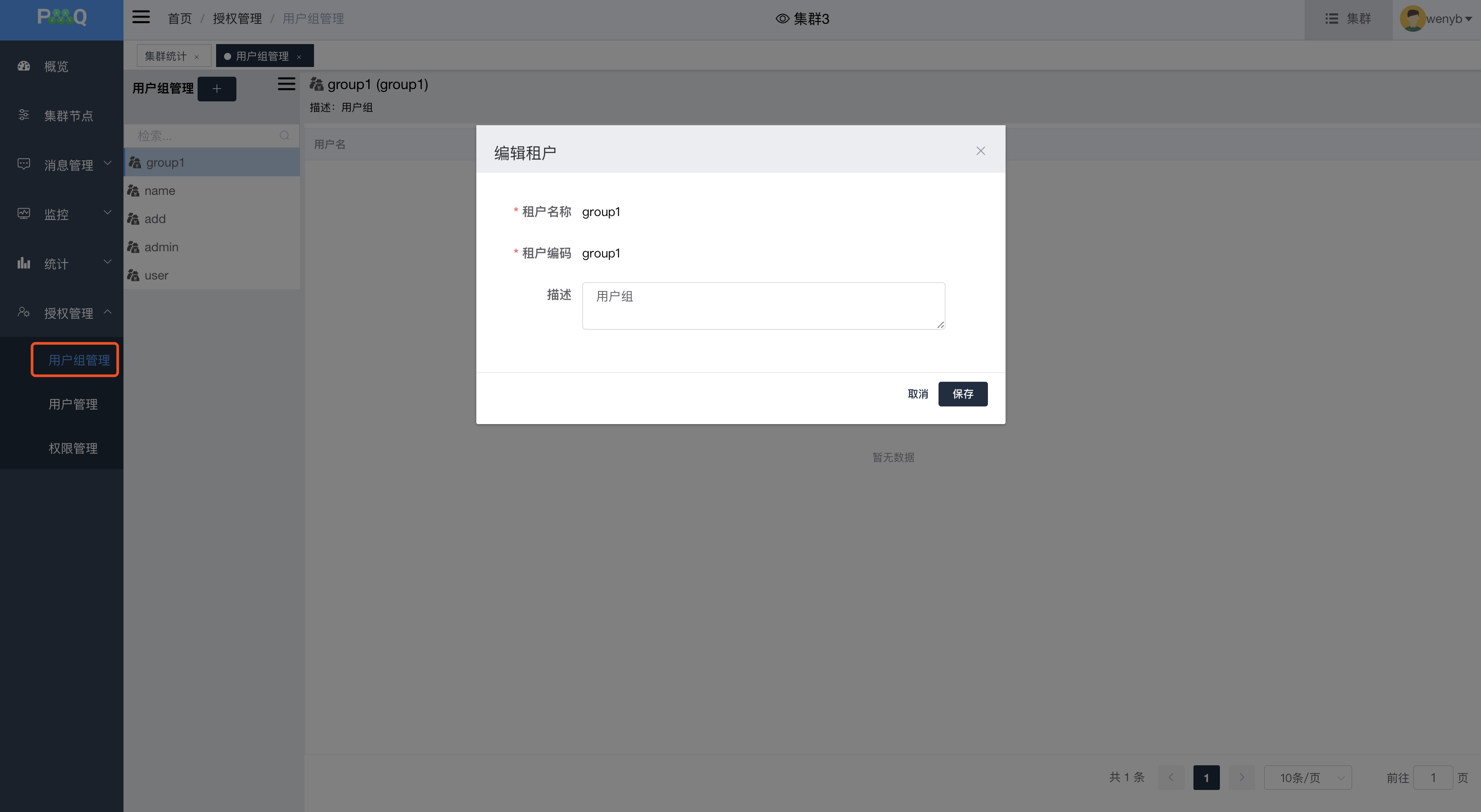 点击用户组对应的“编辑”按钮,弹出编辑用户组表单,填写用户组信息后点击“保存”按钮,提示操作成功后,可修改用户组信息。